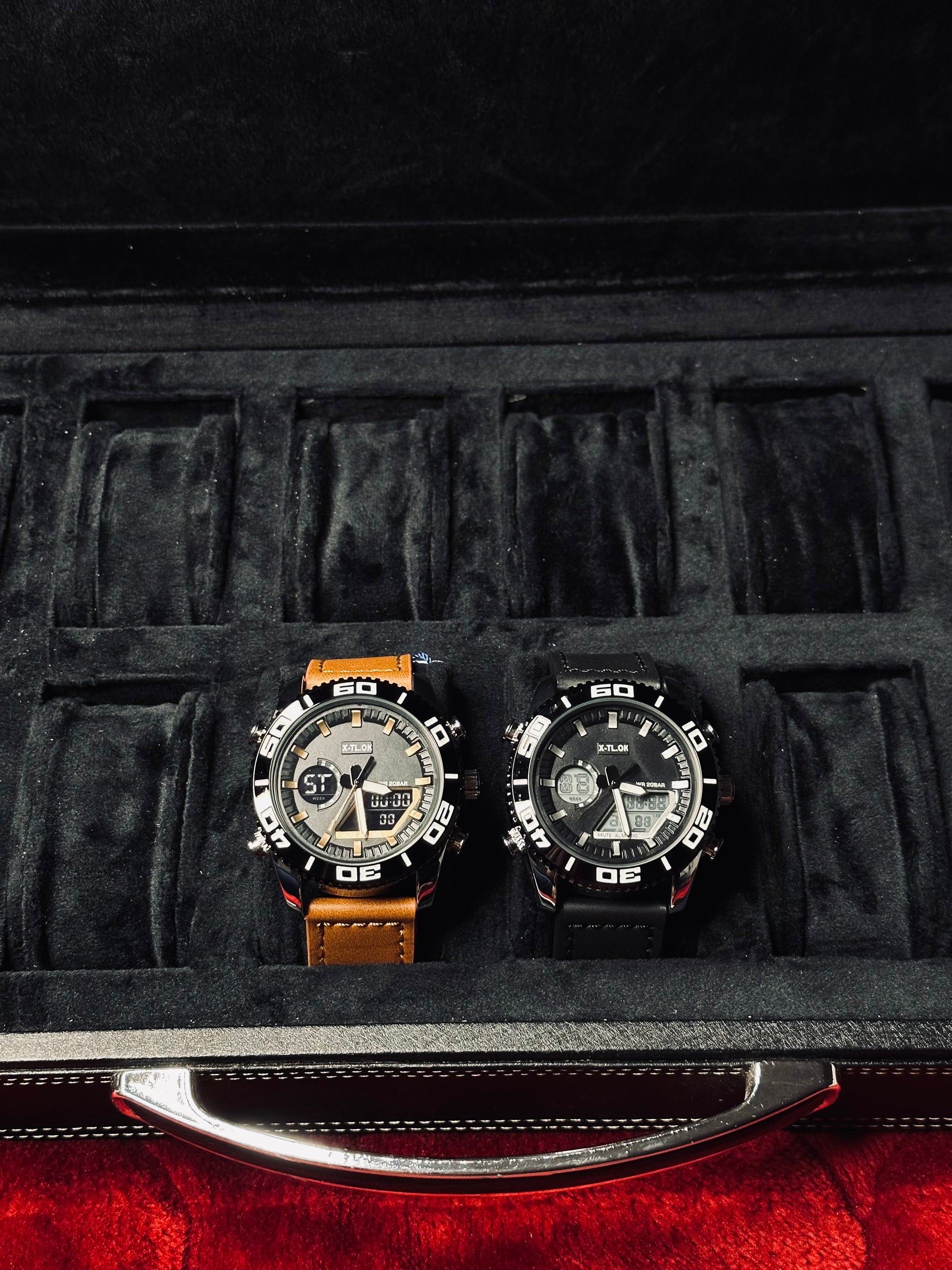 The XT-Lock watch combines the sleekness of a mechanical and digital dial with the functionality of an alarm and built-in light. This premium quality heavy weight watch is perfect for professionals who value both style and reliability. Experience the best of both worlds with XT-Lock.